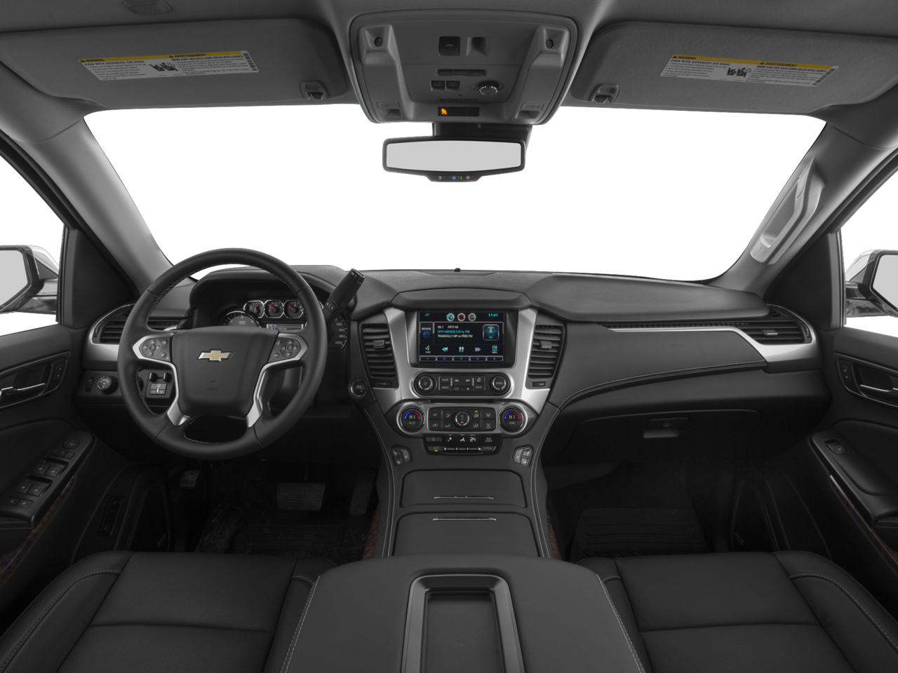 Running Boards, Carbravo Certified, New Brakes, ABS brakes, Automatic temperature control, Bose Centerpoint Premium 10-Speaker Surround Sound, Color-Keyed Carpeting Floor Covering, Compass, Dual front impact airbags, Dual front side impact airbags, Electronic Cruise Control w/Set & Resume Speed, Electronic Stability Control, Enhanced Driver Alert Package (Y86), Floor Console, Front & Rear Parking Assist, Front Bucket Seats, Front dual zone A/C, Heated & Vented Driver & Front Passenger Seats, Heated Leather Wrapped Steering Wheel, Illuminated entry, Lane Keep Assist, Low tire pressure warning, Memory Settings, Navigation System, Occupant sensing airbag, Outside temperature display, Passive Entry System, Perforated Leather-Appointed Seat Trim, Power door mirrors, Power driver seat, Power Liftgate, Power Release 2nd Row Bucket Seats, Power Sunroof, Power windows, Preferred Equipment Group 1LZ, Push Button Keyless Start, Radio: Chevrolet MyLink w/Nav/AM/FM Stereo, Rear air conditioning, Rear Cross-Traffic Alert, Rear Seat Blu-Ray/DVD Entertainment System, Rear window defroster, Rear window wiper, Remote Keyless Entry, Remote Vehicle Start, Side Blind Zone Alert w/Lane Change Alert, Single-Slot CD/MP3 Player, SiriusXM Satellite Radio, Steering wheel mounted audio controls, Sun, Entertainment & Destinations Package, Telescoping steering wheel, Tilt steering wheel, Traction control, Trip computer, Universal Home Remote, Variably intermittent wipers, Voltmeter, Wireless Charging.