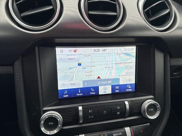 The interior of this Mustang is equally impressive, featuring premium leather-accented seats with color-coordinated accents, a heated steering wheel, and a state-of-the-art 12-inch digital instrument cluster. The Voice-Activated Navigation system and SiriusXM connectivity keep you entertained and informed on every drive.